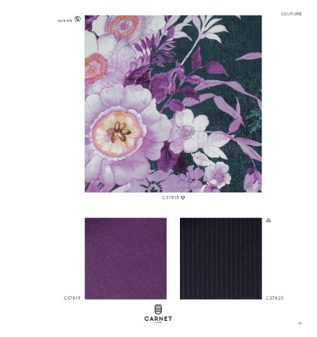 pure silk STAMPA SU CRÊPE DE CHINE DI SETA PRINTED SILK CRÊPE DE CHINE 100% S E C57818 CAPPOTTO EFFETTO PELLICCIA FLANELLA GESSATA FUR EFFECT COAT PINSTRIPE FLANNEL 5 2 %WV 41%WP 6%PA 1%WS 1 0 0 %WV C57819 C578 2 0 10