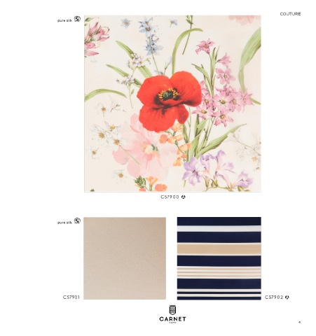pure silk STAMPA SU GEORGETTE DI SETA PRINTED SILK GEORGETTE 100% S E C579 0 0 pure silk JACQUARD DI SETA SILK JACQUARD JACQUARD BARRÉ 100%SE 75%PL 25%SE C57901 C579 0 2 4