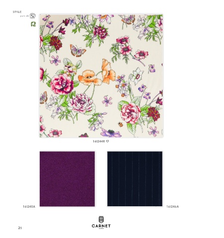 STYL E pure silk STAMPA SU SATIN DI SETA PRINTED SILK SATIN 100%SE h 138 cm • 94 gr 16I244R CAPPOTTO GESSATO CON LUREX COAT PINSTRIPE FABRIC WITH LUREX 90%WV 10%PL 98%WV 2%EA 16I245A h 145 cm • 530 gr h 150 cm • 300 gr 16I246A 21
