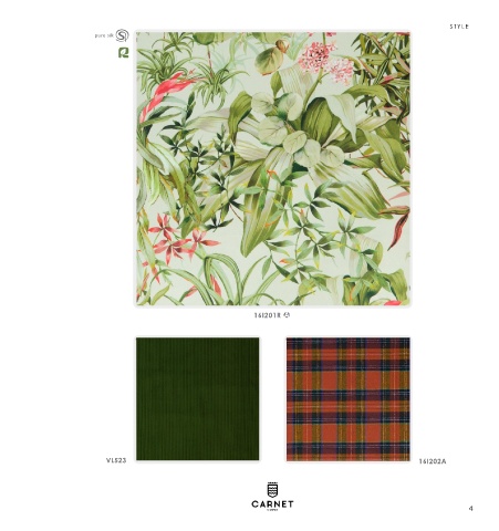 STYL E pure silk STAMPA SU SETA SATIN PRINTED SILK SATIN 100%SE h 138 cm • 94 gr 16I201R VELLUTO 500 RIGHE 500 LINES VELVET TARTAN 100%CO 98%WV 2%EA VL523 h 145 cm • 370 gr h 150 cm • 300 gr 16I202A 4