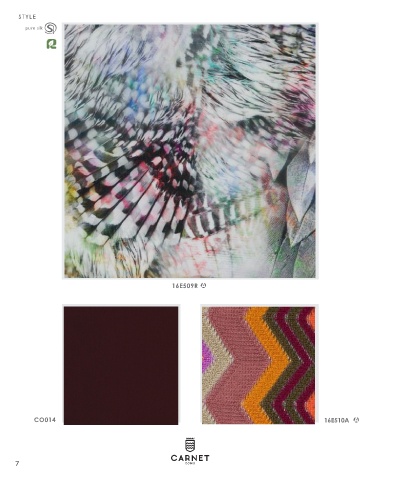STYL E pure silk STAMPA SU GEORGETTE DI SETA PRINTED SILK GEORGETTE 100%SE h 135/145 cm • 59 gr 16E509R TWILL DI COTONE COTTON TWILL MAGLIA MULTICOLOR 97%CO 3%EA 94%PL 6%EA CO014 h 140/150 cm • 280 gr h 145/155 cm • 210 gr 16E510A 7