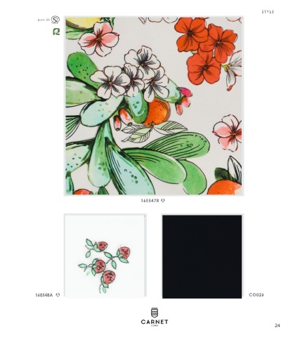 STYL E pure silk STAMPA SU TWILL DI SETA PRINTED SILK TWILL 100%SE h 140/150 cm • 75 gr 16E547R TULLE RICAMATO TWILL DI COTONE LACE EMBROIDERY COTTON TWILL 60%PL 40%VI 97%CO 3%EA 16E548A h 145/155 cm • 59 gr h 140/150 cm • 280 gr CO026 24