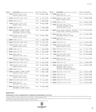 23 16E546R 100%COTONE·COTTON ·COTON 140/150 155 30 16E563R 100% SETA· SILK ·SOIE 135/145 89