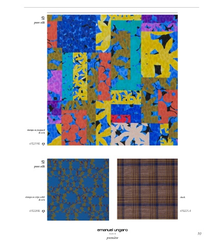 pure silk stampa su jacquard di seta 100%SE 65I219R H 140 cm - P. 107 gr pure silk stampa su crêpe sablé check di seta 100%SE 97%WV 3%EA 65I220R H 140 cm - P. 127 gr H 150 cm - P. 250 gr 65I221A 10