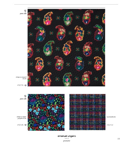 pure silk stampa su jacquard di seta 100%SE 65I231R H 145 cm - P. 99 gr pure silk stampa su doppia tweedmulticolor georgette di seta 100%SE 63%WV 22%PC 7%PA 4%WP 4%WM 65I232R H 140 cm - P. 128 gr H 145 cm - P. 460 gr 65I233A 14