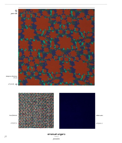 pure silk stampa su charmeuse di seta 100%SE 65I264R H 140 cm - P. 60 gr tweedfantasia velluto unito 42%PA 29%WO 15%CO 5%VI 4%PL 3%PC 2%PU 99%CO 1%EA 65I265A H 137 cm - P. 310 gr H 125 cm - P. 310 gr 65I266A 25