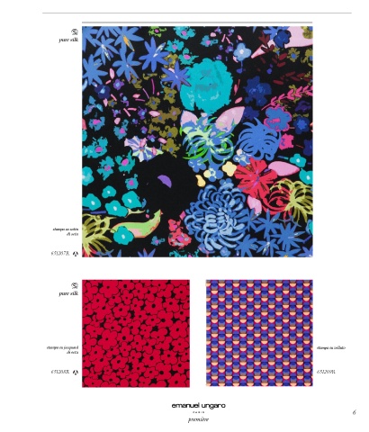 pure silk stampa su satin di seta 100%SE 65I207R H 140 cm - P. 100 gr pure silk stampa su jacquard stampa su velluto di seta 100%SE 100%CO 65I208R H 145 cm - P. 99 gr H 145 cm - P. 370 gr 65I209R 6